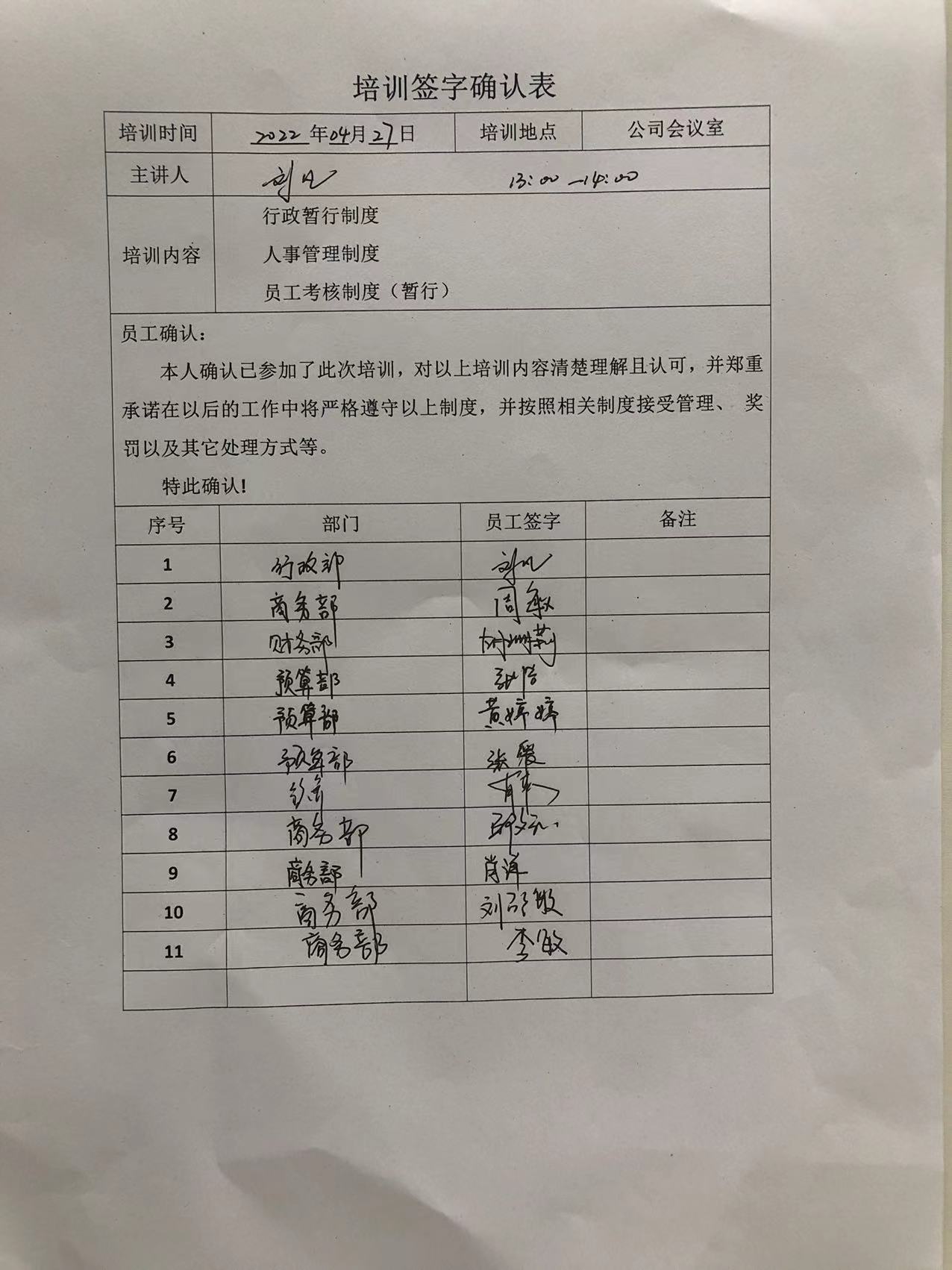 公司结合法律法规和实际情况,不断完善人事、行政、考核等制度,并开展制度培训。